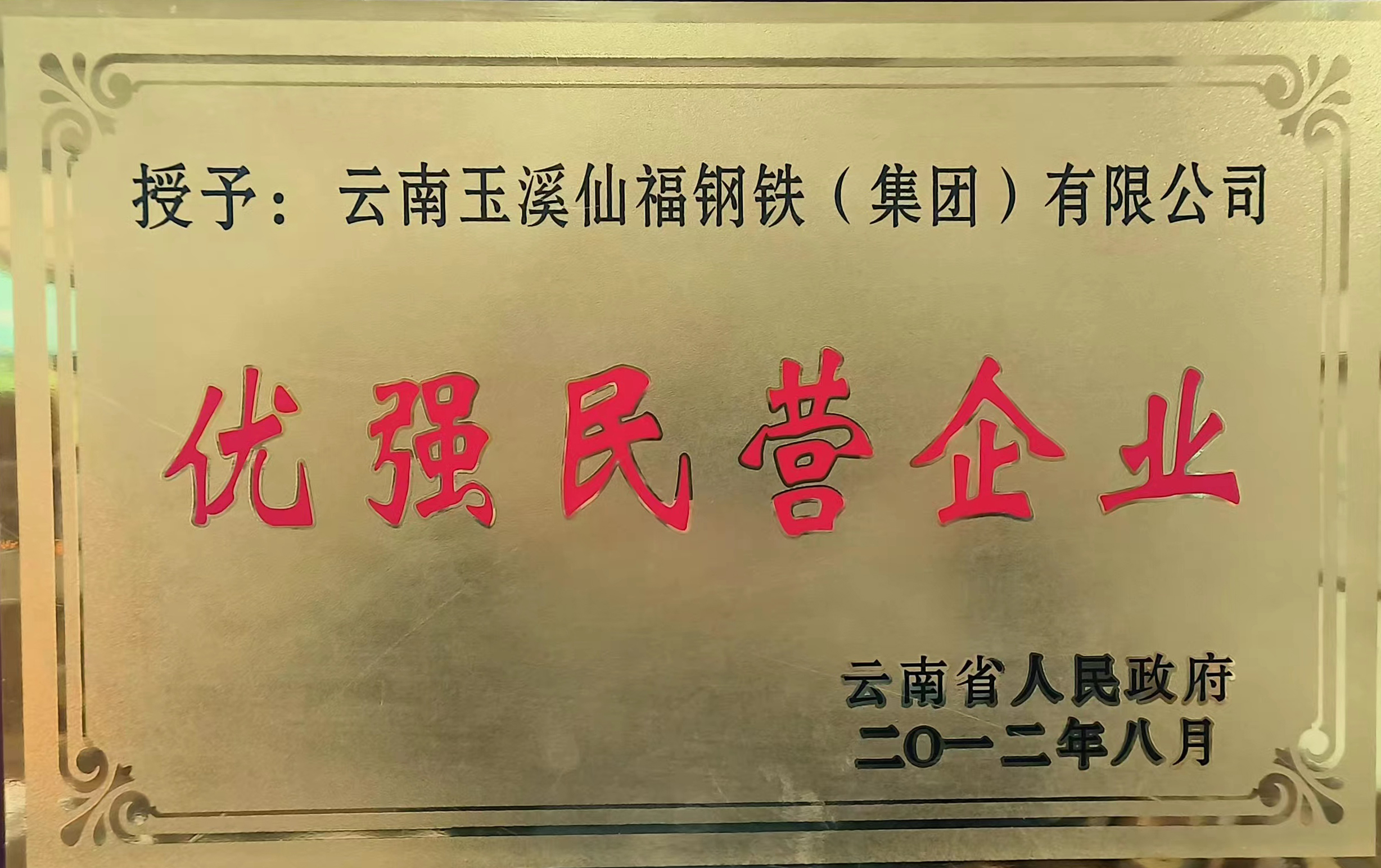 云南省人民政府授予"優(yōu)強(qiáng)民營(yíng)企業(yè)“榮譽(yù)稱號(hào)