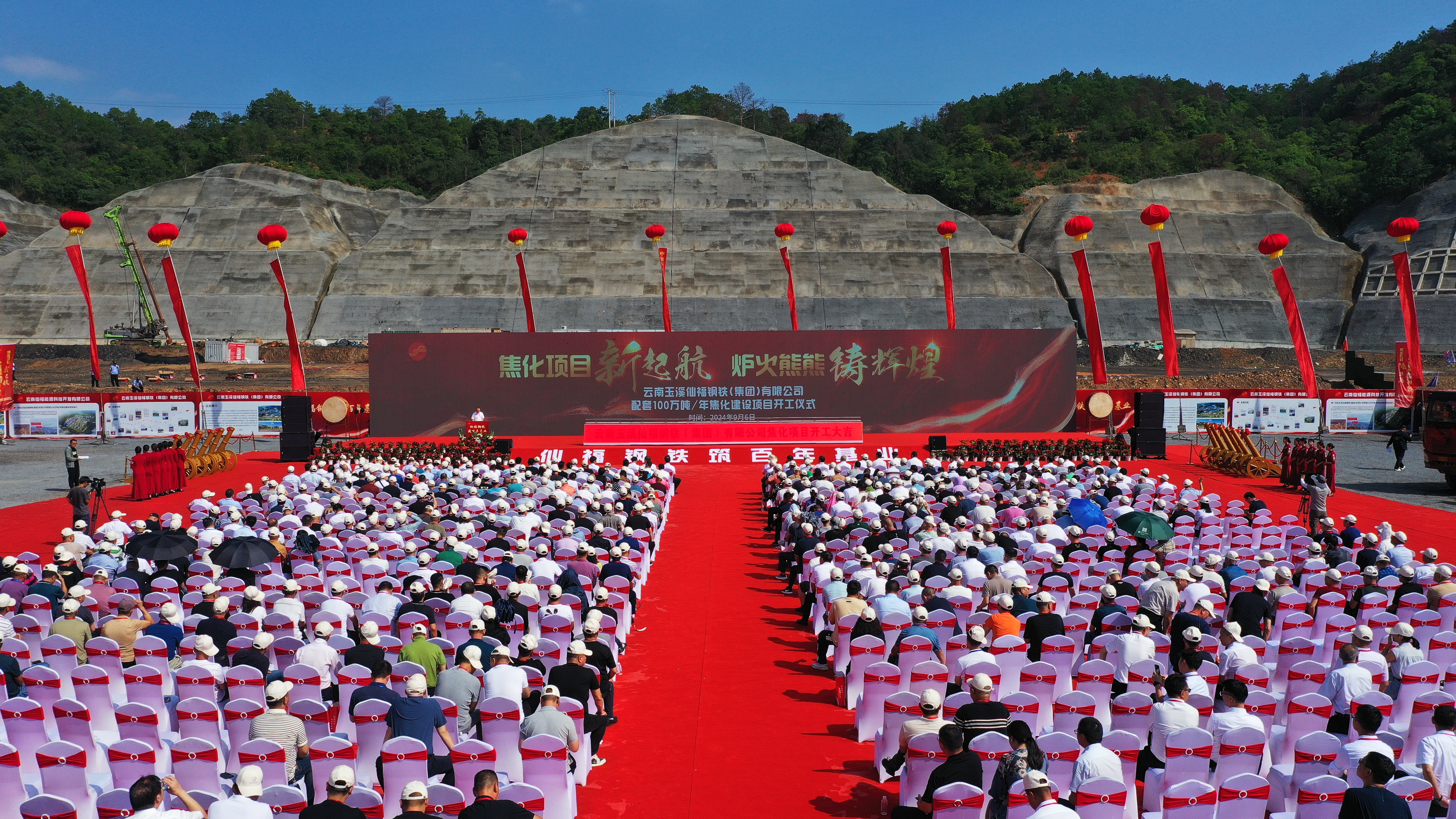 9月6日,云南玉溪仙福鋼鐵(集團)有限公司舉行配套100萬噸/年焦化建設項目開工儀式,標志著仙福鋼鐵集團在全力打通鋼鐵全產(chǎn)業(yè)鏈的道路上,邁出了關(guān)鍵的一步。儀式現(xiàn)場來自玉溪市委、市政府,新平縣委、縣政府,福建長樂區(qū)委、區(qū)政府以及各相關(guān)協(xié)會和合作企業(yè)、各界朋友近1000人共同見證了仙福鋼鐵集團發(fā)展的又一個里程碑。